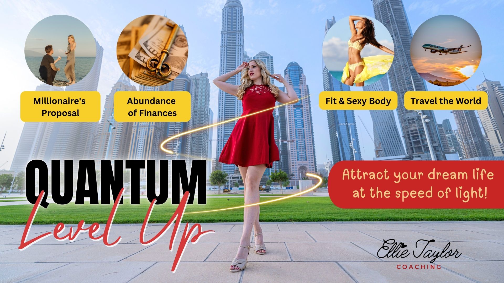 If you are ready to level up to your Top 1% dream life at lightning speed, this is the course for you. Attract your Millionaire’s Proposal, Dream Wedding , Health, Dream Body & Wealth, 100× faster with the “Quantum LevelUp” Course.